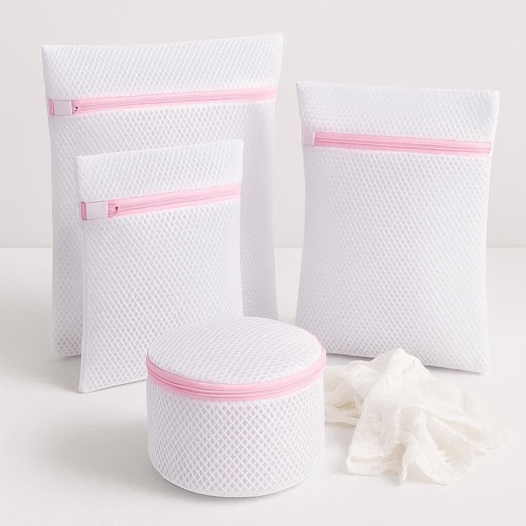 Prevent snags and damage with breathable mesh bags, ideal for washing delicate fabrics like bras, lace, and silk. Machine washable and reusable.